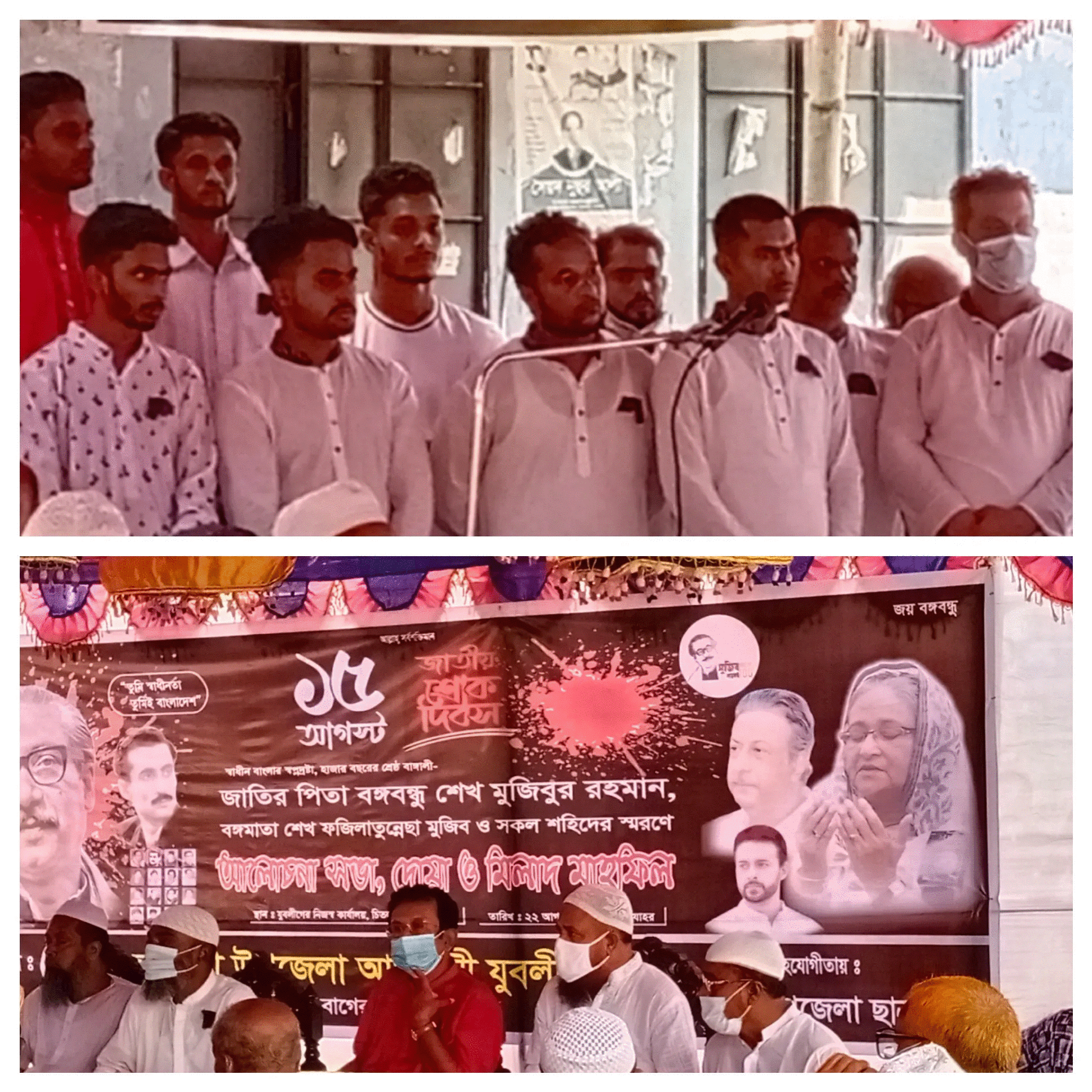 দুপুর ২ টায় দোয়া ও আলোচনা সভা অনুষ্ঠিত হয়৷ উপজেলা যু্বলীগের আহ্বায়ক শেখ নজরুল ইসলামের সভাপতিত্বে প্রধান অতিথি ছিলেন উপজেলা আওয়ামী লীগের সভাপতি মোঃ বাবুল হোসেন খান।