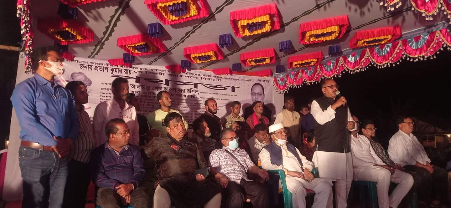 ১১ই নভেম্বর আসন্ন ইউনিয়ন পরিষদ নির্বাচনে বাংলাদেশ আওয়ামিলীগের মনোনীত খুলনা জেলার ডুমুরিয়া উপজেলার ৫নং আটলিয়া ইউনিয়নের নৌকা মার্কার পদপ্রার্থী এ্যাড.প্রতাপ কুমার রায়কে বিজয়ী করার লক্ষ্যে ৫নম্বর আটলিয়া ইউনিয়ন আওয়ামী লীগের উদ্যোগে নির্বাচনী পথসভা অনুষ্ঠিত হয় গতকাল বিকাল ৪টার সময় ডুমুরিয়া উপজেলার ৫নম্বর আটলিয়া ইউনিয়নের কাঠালতলা বাজার চত্বরে,পবিত্র কোরআন তেলয়াত এবং পবিত্র গীতা পাঠের মধ্য দিয়ে। উক্ত নির্বাচনী পথসভায় সভাপতিত্ব করেন ৫নম্বর আটলিয়া ইউনিয়নের আওয়ামী লীগের সভাপতি এস এম মোস্তাফিজুর রহমান দুলু, উক্ত অনুষ্ঠান পরিচালনা করে সরদার শরিফুল ইসলাম। প্রধান অতিথি হিসেবে উপস্থিত