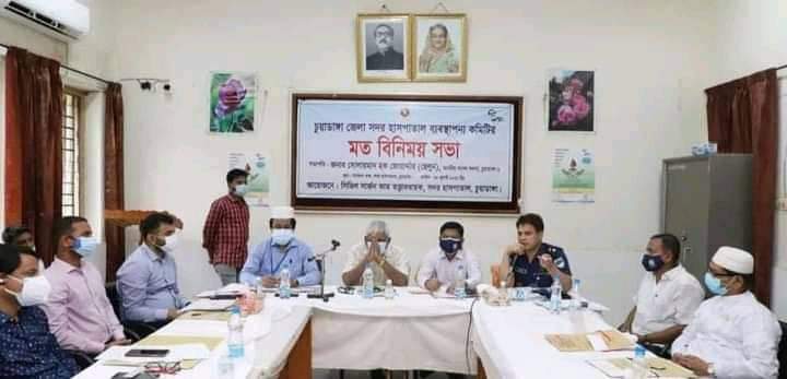 চুয়াডাঙ্গা সদর হাসপাতাল ব্যবস্থাপনা কমিটির সভা অনুষ্ঠিত হয়েছে। বুধবার ২৮ জুলাই সকাল সাড়ে ১০ টায় সদর হাসপাতালের সম্মেলন কক্ষে এ সভা অনুষ্ঠিত হয়। উক্ত সভায় সভপতিত্ব করেন হাসপাতাল ব্যবস্থাপনা কমিটির সভাপতি জেলা আওয়ামী লীগের সভাপতি চুয়াডাঙ্গা-১ আসনের সংসদ সদস্য বীর মুক্তিযোদ্ধা সোলায়মান হক জোয়ার্দ্দার ছেলুন এমপি। সভায় করোনা সংশ্লিষ্ট কাজে নানান অনিময়মের অভিযোগ উঠে এবং অভিযোগ তদন্তের জন্য ৫ সদস্য বিশিষ্ট তদন্ত কমিটি গঠন করা হয়েছে। প্রতি