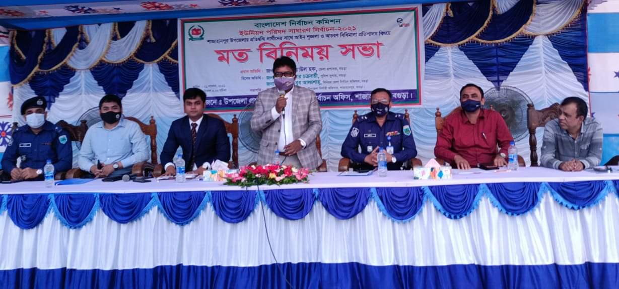 শাজাহানপুর উপজেলা নির্বাহী অফিসার আসিফ আহমেদের সভাপতিত্বে এবং বগুড়া সদর উপজেলা নির্বাচন কর্মকর্তা এস.এম জাকির হোসেনের সঞ্চালনায় অনুষ্ঠানে বিশেষ অতিথির বক্তব্য রাখেন পুলিশ সুপার সুদীপ কুমার চক্রবর্তী, বগুড়ার সিনিয়র জেলা নির্বাচন কর্মকর্তা মাহবুব আলম শাহ্। উক্ত মত বিনিময় সভায় বিভিন্ন ইউনিয়ন পরিষদ নির্বাচনে প্রতিদ্বন্দ্বিতাকারি চেয়ারম্যান প্রার্থী, সংরক্ষিত মহিলা আসনের সদস্য প্রার্থী এবং সাধারণ আসনের সদস্য প্রার্থীরা বক্তব্য রাখেন।