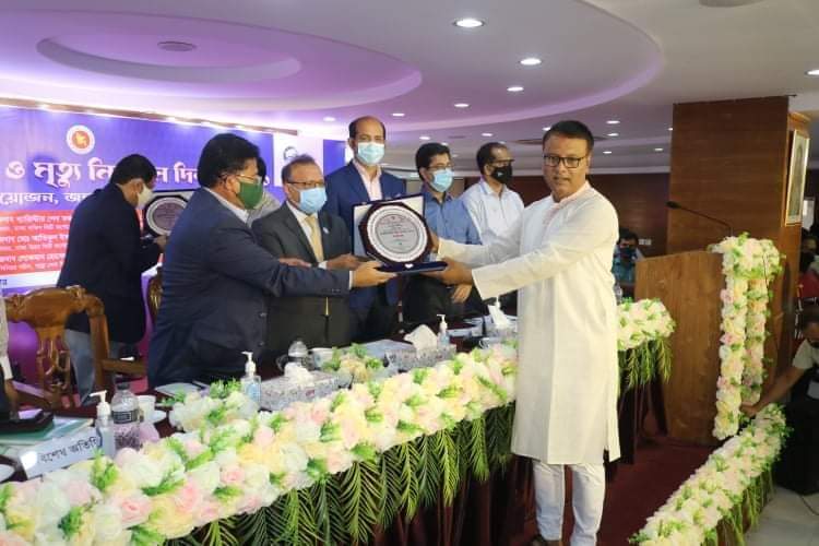 গত ১২/০৯/২১ তারিখ স্থানীয় সরকার বিভাগের সিনিয়র সচিব মহোদয়ের সভাপতিত্বে জাতীয় জন্ম ও মৃত্যু নিবন্ধন দিবস উদযাপন উপলক্ষে আন্তঃমন্ত্রণালয় প্রস্তুতিমূলক সভা অনুষ্ঠিত হয়। উক্ত সিদ্ধান্তের প্রেক্ষিতে জন্ম ও মৃত্যু নিবন্ধন করুন এবং জন্ম ও মৃত্যু নিবন্ধন কার্যক্রম দক্ষতার সাথে সম্পাদনের স্বীকৃতিস্বরূপ জাতীয় পর্যায়ের শ্রেষ্ঠ ইউনিয়ন পরিষদ, পৌরসভা, সিটি কর্পোরেশন ও বিদেশে অবস্থিত বাংলাদেশ মিশন/ দূতাবাস ও প্রতি প্রশাসনিক বিভাগ হতে শ্রেষ্ঠ ইউনিয়ন পরিষদ এবং শ্রেষ্ঠ উপজেলা,শ্রেষ্ঠ জেলা ও শ্রেষ্ঠ বিভাগকে পুরস্কৃত করা হয়। নিবন্ধক কার্যালয়কে একটি সম্মাননা সনদ ও ক্রেস্ট প্রদান করা হয় । ঢাকায় অনুষ্ঠিত জাতীয় জন্ম ও মৃত্যু নিবন্ধন দিবস উদযাপন উপলক্ষে আয়োজিত আলোচনা সভাস্থল হতে সংশ্লিষ্ট প্রতিষ্ঠানের প্রধান/ মনোনীত প্রতিনিধিগণ কার্যালয়ের পক্ষে সম্মাননা সনদ গ্রহণের জন্য উপস্থিত ছিলেন।