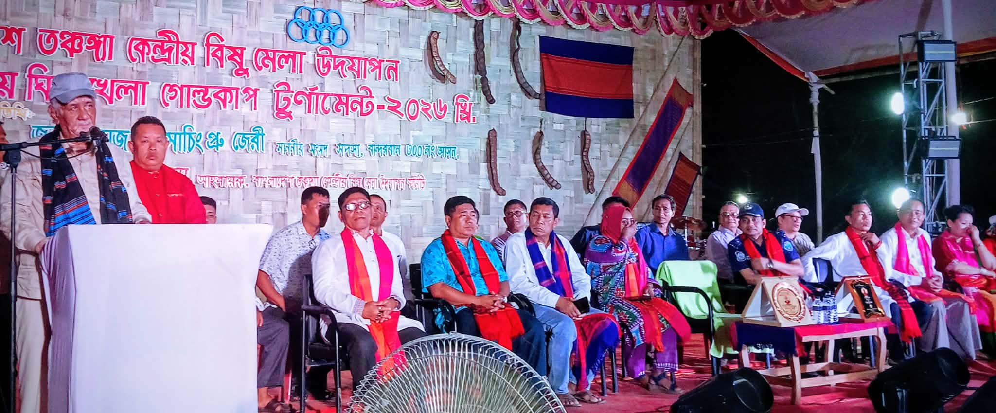 বোমাং সার্কেলের অধীনে বান্দরবান প্রায় ১৪ টি জাতিসত্বা রয়েছে। এজন্য বান্দরবানকে মিনি চিটাগং হিলট্রাক বলা হয়। প্রধানমন্ত্রীর ৩১ দফার বাস্তবায়নে ১১ টি ক্ষুদ্র ভাষার মধ্যে ১০ টার অনুবাদ রয়েছে সেখানে তঞ্চঙ্গ্যা ভাষাও অনুবাদ করা আছে। নিজস্ব যে কোনো ফাংশানে/ অনুষ্ঠানে নিজস্ব ভাষা ব্যবহার করা। সেটা তোমাদের অধিকার তোমাদের স্বীকৃতি। নারী ও পুরুষের নিজস্ব ট্রাডিশনাল পোশাক দেখে খুবই মুগ্ধ হয়েছি। এটা শুধু বাংলাদেশে প্রচারে নয় সারা বিশ্বে প্রচার হবে। পার্বত্য চট্টগ্রামে ১৪ জাতি সত্বার রাষ্ট্রীভাবে যেখাবে সুযোগ আসবে সেটা প্রোফার্লী তঞ্চঙ্গ্যা জাতিও পাবে। তঞ্চঙ্গ্যা জাতির সঙ্গে গভীর সম্পর্ক রয়েছে বলেও তিনি জানান এবং গুনমুনি মহাজনের কথা স্বরণ করেন। এরঁ আগে প্রধান অতিথি ঘিলা খেলা গোল্ডকাপ টুর্নামেন্ট শুভ উদ্বোধন করেন সকলের সঙ্গে কুশল বিনিময় করেন এবং কয়েকদিন আগে ৭০০ টি ঘিলা উপহার দেন।