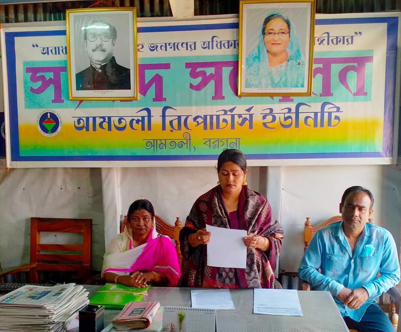 সংবাদ সম্মেলনে কানিজ ফাতেমা শিল্পী ও খাদিজা বেগম বেবির সাথে ভাই মোঃ ফিরোজ বিশ্বাসও উপস্থিত ছিলেন।