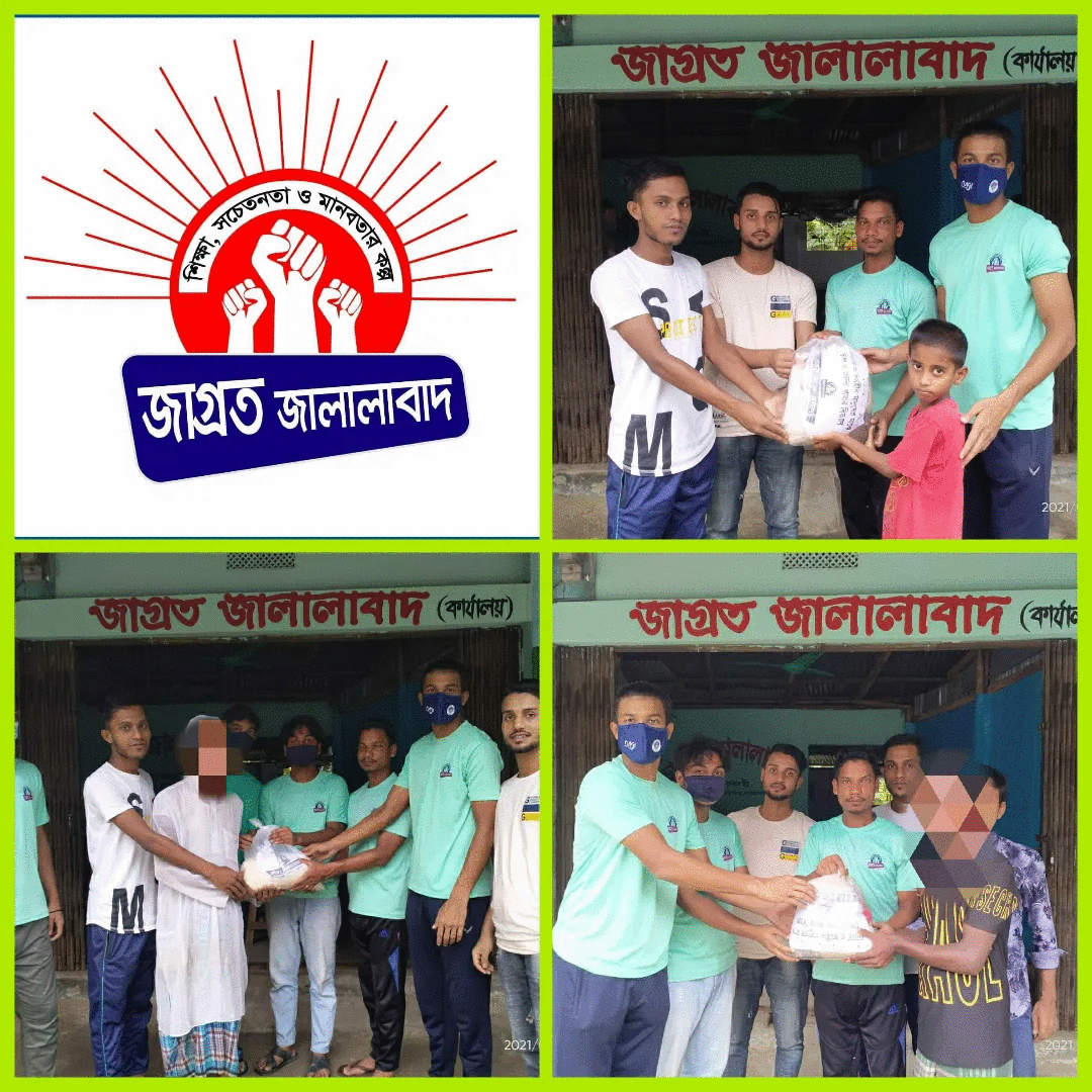 জানা যায়, জাগ্রত জালালাবাদ সংগঠনের উপদেষ্টা ও জালালাবাদ ইউনিয়ন পরিষদের চেয়ারম্যান ইমরুল হাসান রাশেদের নির্দেশনায় বর্ণিত ইউনিয়নের অধ্যশতাদিক পানিবন্দি ও কর্মহীন মানুষের মাঝে চাল ও শুকনো খাবার বিতরণ করেছে জাগ্রত জালালাবাদ সংগঠন।