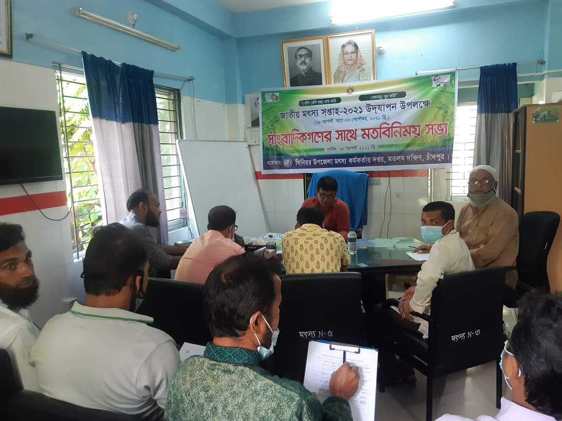 ‘বেশি বেশি মাছ চাষ করি, বেকারত্ব দূর করি’ এই প্রতিপাদ্য সামনে রেখে মতলব দক্ষিণে জাতীয় মৎস্য সপ্তাহ-২০২১ উদযাপন উপলক্ষে সাংবাদিকদের সাথে মতবিনিময় সভা অনুষ্ঠিত হয়েছে।