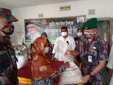 লালমনিরহাট জেলার পাটগ্রাম উপজেলার মুল ভূ-খন্ড থেকে বিচ্ছিন্ন লোকালয় দহগ্রাম-আঙ্গরপোতায় জাতির পিতা বঙ্গবন্ধু শেখ মুজিবুর রহমানের ৪৬তম মৃত্যু বার্ষিকী ও জাতীয় শোক দিবস উপলক্ষ্যে ১২০টি গরীব ও অসহায় পরিবারকে খাদ্য সামগ্রী বিতরণ করেছে বর্ডার গার্ড বাংলাদেশ (বিজিবি)।