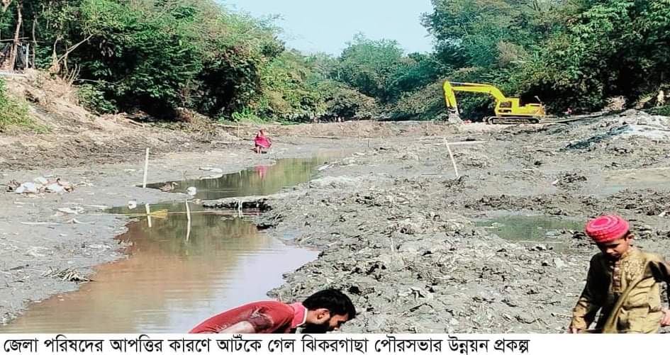 যশোরের জেলা পরিষদের আপত্তির করণে আটঁকে গেল ঝিকরগাছা পৌরসভার দু’টি উন্নয়ন প্রকল্পের কাজ। বর্তমানে পৌরসভার দু'টি উন্নয়ন প্রকল্পের কাজ বন্ধ রয়েছে। পৌরসভা এলাকার উন্নয়নে সেকন্ড সিটি রিজিওন ডেভেলপমেন্ট প্রোজেক্ট এর আওতায় পৌর সদরের কাটাখালের উপর ৩৬ মিটারের আরসিসি গার্ডার ব্রিজ ও খালের দু’পাশে ৫শ মিটার ওয়াকওয়ে নির্মাণ, ভূমি সংরক্ষণ এবং সৌন্দর্য্য বর্ধন প্রকল্পের কাজ শুরু করেছিল। কিন্তু প্রকল্প সংশ্লিষ্ট জায়গা নিজেদের দাবি করে সেখানকার কাজ বন্ধ রাখার জন্য চিঠি পাঠিয়েছেন জেলা পরিষদ। সম্প্রতি ১৪ ফেব্রুয়ারী ১(২০১১)-৮৬ নং স্মারকে জেলা পরিষদ পৌরসভা সদরের কৃষ্ণনগর মৌজায় কাটাখালের সৌন্দর্য্যবর্ধন ও উন্নয়নমূলক কাজ বন্ধ রেখে যৌথভাবে জেলা পরিষদের মালিকানাধীন খালের উভয় পার্শ্বে সীমানা নির্ধারণ পূর্বক অবৈধ স্থাপনা উচ্ছেদ, জীবিত ও মূল্যবান গাছ চিহ্নিত করণ, বিধি মোতাবেক নাম্বারিং করার প্রয়োজনীয়তার কথা উল্লেখ করে কাজ বন্ধ রাখতে নির্দেশ প্রদান করেছেন। এই চিঠির ফলে উল্লেখিত দু’টি উন্নয়ন প্রকল্প এর কাজ আটঁকে গেছে।