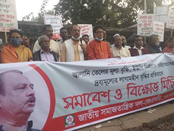 জ্বালানি তেল ও দ্রব্যমূল্য বৃদ্ধি এবং ইউপি নির্বাচনে সহিংসতার প্রতিবাদে আজ বিকেল ৩ টায় জাতীয় প্রেসক্লাবের সম্মুখে ঢাকা মহানগরী জেএসডি আয়োজিত বিক্ষোভ মিছিল পূর্ব সমাবেশে নেতৃবৃন্দ এসকল কথা বলেন।