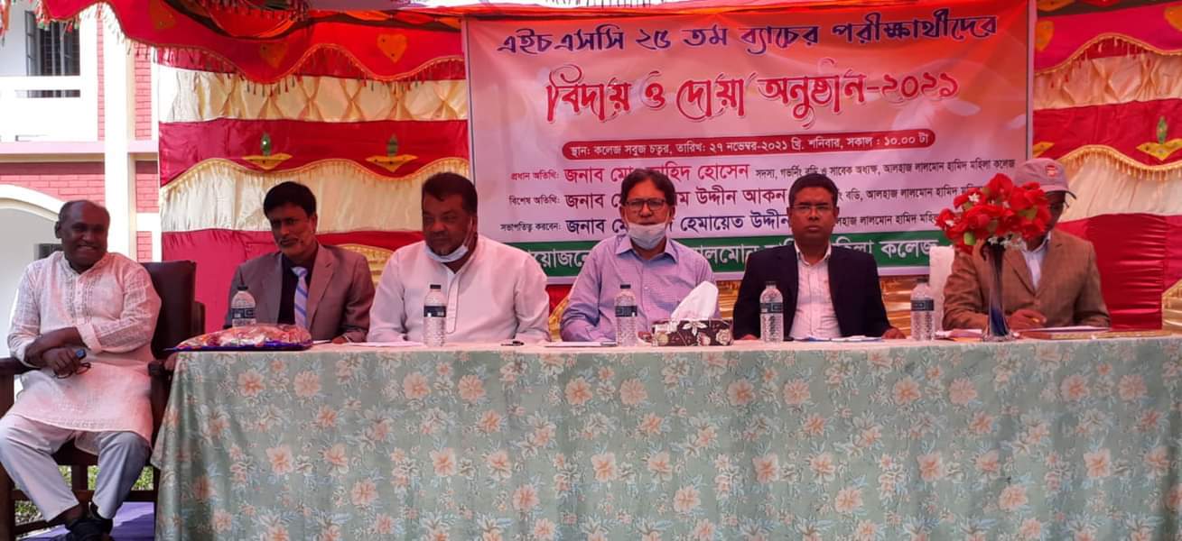 ঝালকাঠির রাজাপুরে আলহাজ লালমোন হামিদ মহিলা কলেজের এইচএসসি পরীক্ষার্থীদের বিদায় অনুষ্ঠান অনুষ্ঠিত হয়েছে। এ উপলক্ষে শনিবার সকাল সাড়ে ১০টায় কলেজের সবুজ চত্তরে এক আলোচনা সভা ও দোয়া অনুষ্ঠিত হয়েছে।