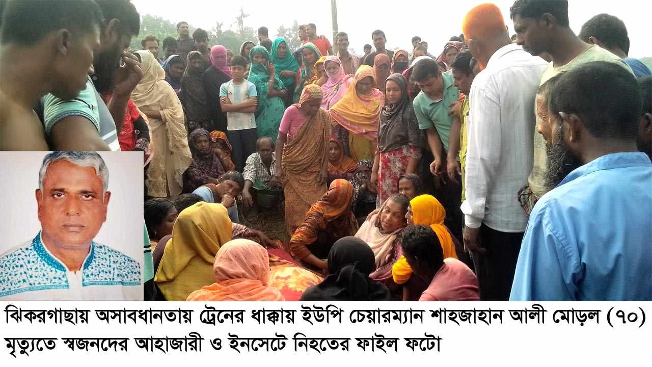 যশোরের ঝিকরগাছা উপজেলার ৪নং গদখালী ইউনিয়ন পরিষদের চেয়ারম্যান, ইউনিয়ন আওয়ামীলীগের সভাপতি ও বিশিষ্ট ব্যবসায়ী শাহজাহান আলী মোড়ল (৭০) অসাবধানতায় ট্রেনের ধাক্কায় মৃত্যুবরণ করেছেন (ইন্না লিল্লাহি ওয়া ইন্না ইলাইহি রাজিউন)। তিনি বেনেয়ালী গ্রামের মৃত জোনাব আলী মোড়লের ছেলে।