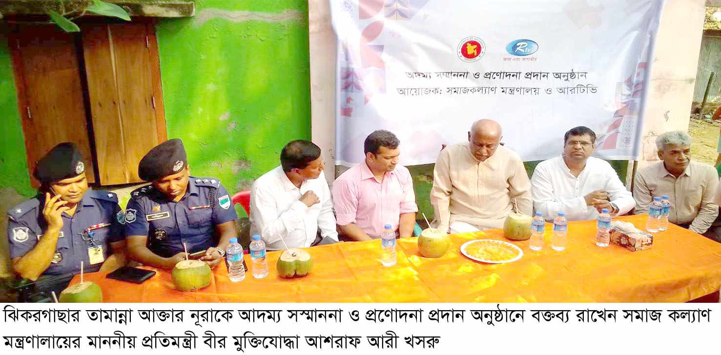 সমাজ কল্যাণ মন্ত্রণালায় ও আর টিভির আয়োজনে যশোরের ঝিকরগাছা উপজেলার বাঁকড়া ইউনিয়নের আলীপুর গ্রামের মেয়ে অদম্য তামান্না আক্তার নূরাকে আদম্য সস্মাননা ও প্রণোদনা প্রদান করা হয়েছে।