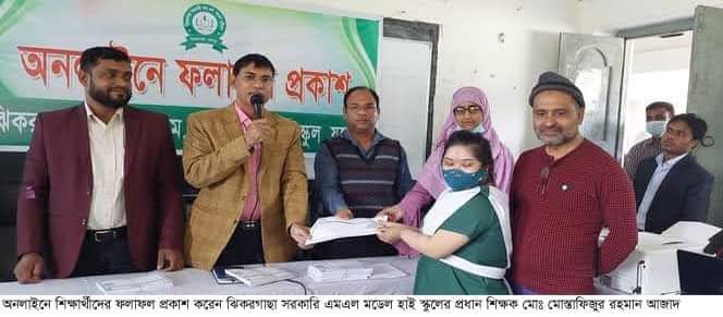 শাহাবুদ্দিন মোড়ল ঝিকরগাছা যশোর : যশোরের ঐতিহ্যবাহী শিক্ষা প্রতিষ্ঠান ঝিকরগাছা সরকারি এমএল মডেল হাই স্কুল ডিজিটাল বাংলাদেশ গড়ার লক্ষে অনলাইনের মাধ্যমে শিক্ষার্থীদের পরিক্ষার ফলাফল প্রকাশ করেছে। রবিবার সকাল সাড়ে ১০টার সময় স্কুলের কনফারেন্স রুমের এই আয়োজনে ঝিকরগাছা সরকারি এমএল মডেল হাই স্কুলের প্রধান শিক্ষক মোঃ মোস্তাফিজুর রহমান আজাদ’র সভাপতিত্বে উপস্থিত ছিলেন, সহকারী প্রধান শিক্ষক এএফএম সাজ্জাদুল আলম, সিনিয়র শিক্ষক আফরোজা খানম চায়না, রাজিয়া সুলতানা, মনির হোসেন, দেবাশীষ বিশ্বাস, উজ্জ্বল বিশ্বাস সহ স্কুলের সকল শিক্ষকবৃন্দ, অভিভাবক ও শিক্ষার্থীবৃন্দ। অনুষ্ঠানে ঝিকরগাছা সরকারি এমএল মডেল হাই স্কুলের প্রধান শিক্ষক মোঃ মোস্তাফিজুর রহমান আজাদ বলেন, আজ ডিজিটাল বাংলাদেশ দিবস। আর এই ডিজিটাল দিবসকে স্মরণ করে রাখতে আমাদের এই ভিন্ন আয়োজন। স্কুলের সুনাম অক্ষুন্ন রাখতে প্রতিষ্ঠানের প্রতিটা শিক্ষকই কঠোর পরিশ্রম করছেন। আমি আশাকরি ক্রমাগতই আমাদের শিক্ষার্থীরা ভালো ফলাফল করছে এবং ভবিষ্যতেও আরো ভালো করবে।