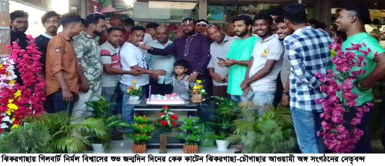 মাননীয় প্রধানমন্ত্রী জননেত্রী শেখ হাসিনার অত্যন্ত আস্থাভাজন, বাংলাদেশ হিন্দু-বৌদ্ধ-খ্রিস্টান ঐক্য পরিষদ ঝিকরগাছা উপজেলা শাখার আহ্বায়ক, গঙ্গানন্দপুর ডিগ্রী কলেজের সভাপতি, আগামী জাতীয় সংসদ নির্বাচনে যশোর-২ (চৌগাছা-ঝিকরগাছা) আসন থেকে নৌকা মার্কা প্রতিকের মনোনয়ন প্রত্যাশী গিলবার্ট নির্মল বিশ্বাসের শুভ জন্মদিন পালিত হয়েছে। শুক্রবার সন্ধ্যায় ৬টার সময় ঝিকরগাছা বাজারের এসকে সুপার মার্কেটের ২য় তলায় জন্মদিন উপলক্ষে ঝিকরগাছা ও চৌগাছা উপজেলার আওয়ামীলীগ ও তার অঙ্গ সংগঠনের নেতৃবৃন্দদের মাঝে কেক কাটা ও মিষ্টি বিতরণ করা হয়।