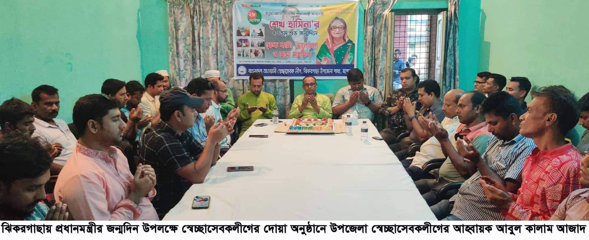 মাননীয় প্রধানমন্ত্রী ও আওয়ামীলীগের সভাপতি জননেত্রী শেখ হাসিনার ৭৬তম জন্মদিন উপলক্ষে যশোরের ঝিকরগাছা উপজেলা স্বেচ্ছাসেবকলীগের আয়োজনে দোয়া মাহফিল ও আলোচনা সভা অনুষ্ঠিত হয়েছে। বুধবার বিকেলে জেলা পরিষদের ডাকবাংলোয় অনুষ্ঠানে সভাপতিত্ব করেন উপজেলা স্বেচ্ছাসেবকলীগের আহ্বায়ক আবুল কালাম আজাদ। উপজেলা স্বেচ্ছাসেবকলীগের যুগ্ম আহ্বায়ক শেখ ইমরানের সঞ্চালনায় উপস্থিত ছিলেন সদস্য এইচএম ওমর শরীফ সাকী, জাহিদুল ইসলাম, মাহমুদ মুকুল, ফারুক হোসেন, সাজ্জাতুল জামান রনি, প্রিন্স আহমেদ, মিন্টু মিয়া ও ইবাদ আলী, পৌর স্বেচ্ছাসেবক লীগ নেতা হাসানুর জামান তুহিন, প্রশান্ত বিশ্বাস, রাজন, ডলার, রকি, আশাকুল ইসলাম, শংকরপুর ইউনিয়নের সভাপতি শিব্বির আহমেদ শাহীন, সাধারণ সম্পাদক আশানুর রহমান, যুগ্ম-সাধারণ সম্পাদক হাবিবুর রহমান, হাজিরবাগ ইউনিয়নের সভাপতি আয়নাল হোসেন, সহসভাপতি আব্দুল জলিল, সাধারণ সম্পাদক মো. আলাউদ্দিন, দফতর সম্পাদক ওয়াসিম আকরাম, বাঁকড়ার নুরুজ্জামান আকাশ, জুয়েল রানা, শিমুলিয়ার নয়ন হোসেন, নাভারণের রিজু আহমেদ, রবি শিকদার, সদরের আলমগীর হোসেন, মাগুরার লিটু, ওয়াহিদুজ্জামান, নির্বাসখোলার আব্দুল গফুর তোতা, গদখালীর রনি আহমেদ, মুন্সী আবুল হুসাইন, আরিফ হাসান সহ আরো অনেকে।