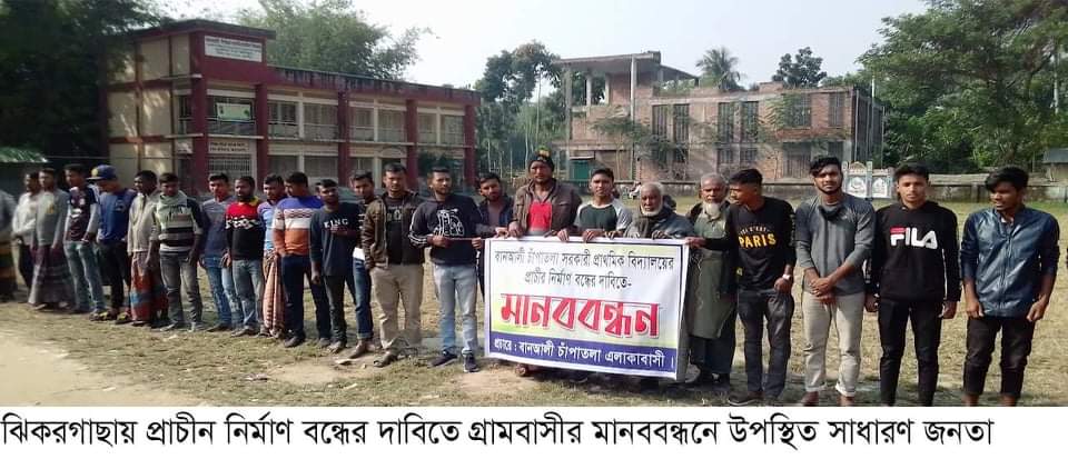 যশোরের ঝিকরগাছা উপজেলার গদখালী ইউনিয়নের অর্ন্তগত বামনআলী চাঁপাতলা গ্রামের হাজার-হাজার মানুষের চলাচলের পথ ও এলাকার সাধারণ মানুষের বাচ্চাদের খেলার স্থান বন্ধ করে বামনআলী চাঁপাতলা সরকারি প্রাথমিক বিদ্যালয়ের মাঠে প্রাচীর নির্মাণ বন্ধের দাবিতে মানববন্ধন অনুষ্ঠিত হয়েছে। রবিবার সকাল ১০টার সময় বামনআলী চাঁপাতলা সরকারি প্রাথমিক বিদ্যালয়ের মাঠের সামনের রাস্তায় মানববন্ধনে উপস্থিত ছিলেন, গ্রামবাসীর পক্ষে আশিক মাহমুদ, রিপন খা, মাষ্টার সোহেল, মশিয়ার রহমান, আলম, শাহাজান আলী, তৈয়ব আলী, বড় বাবু, ইমন, মিরাজ, জেকে, শাকিব, সুমন, অপু, উসমান, সজল, আঃ রহিম, করিম, আবু সাঈদ, তন্ময়, আকাশ, তামিম, সাইফুল, মিঠু, হৃদয়, রিয়াজ, শামিম, ফয়েজ, রেজা, তানভীর, রাব্বি, জয় শতশত মানুষ অংশগ্রহণ করেন।