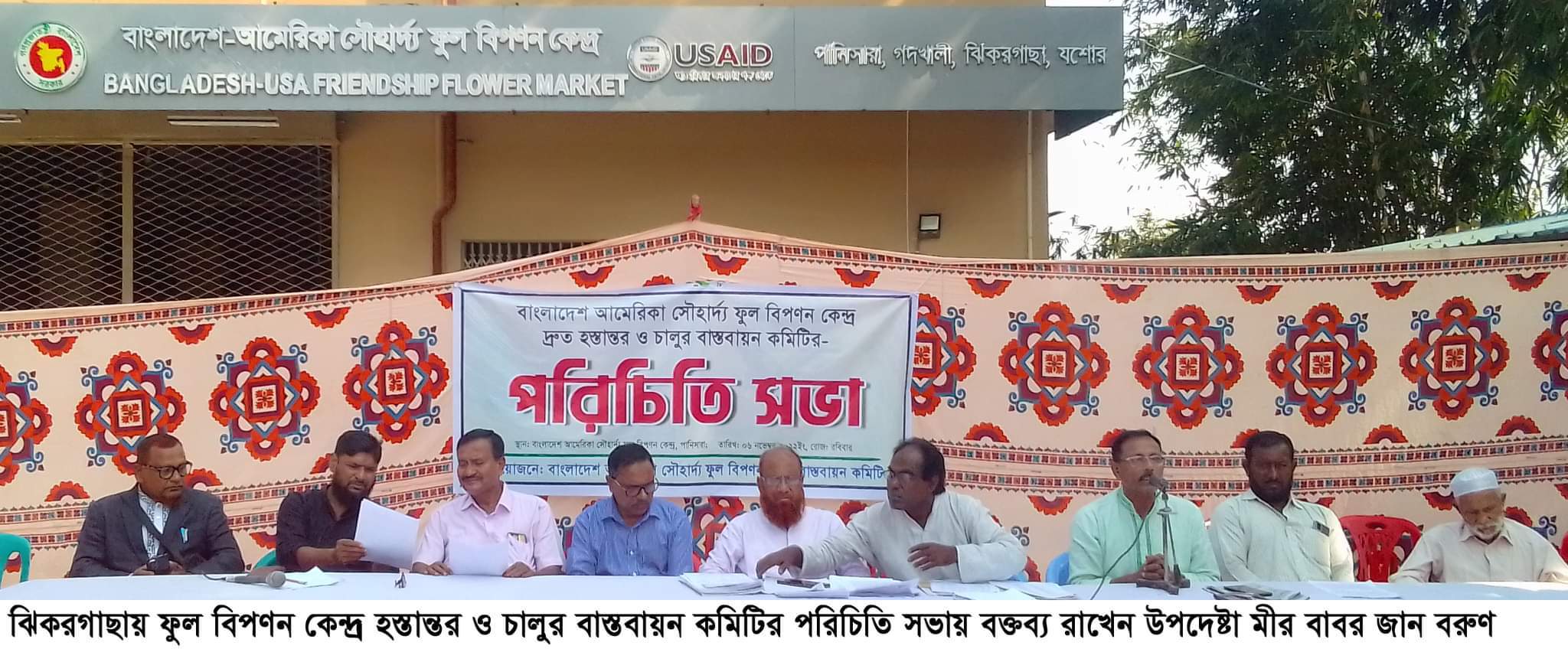 যশোরের ঝিকরগাছায় বাংলাদেশ আমেরিকা সৌহার্দ্য ফুল বিপণন কেন্দ্র দ্রুত হস্তান্তর ও চালুর বাস্তবায়ন কমিটির পরিচিতি সভা অনুষ্ঠিত হয়েছে। রবিবার সকাল সাড়ে ১১টার সময় বাংলাদেশ আমেরিকা সৌহার্দ্য ফুল বিপণন কেন্দ্র বাস্তবায়ন কমিটির আয়োজনে পানিসারা, গদখালির বাংলাদেশ আমেরিকা সৌহার্দ্য ফুল বিপণন কেন্দ্রে পরিচিতি সভায় ফুল বিপণন কেন্দ্র দ্রুত হস্তান্তর ও চালুর বাস্তবায়ন কমিটির আহবায়য়ক মীর ফারুখ আহম্মদের সভাপতিত্ব উপস্থিত ছিলেন, উপদেষ্টা মীর বাবর জান বরুণ, আব্দুর রহিম, শের আলী সরদার, দুলাল সরকার, আব্দুর করিম সরদার, সদস্য সচিব সাঈদ আহমেদ রেজা, সদস্য ইসমাইল হোসেন, আজিজুর সরদার, সাইফুল ঢালী সহ ৫১ সদস্যের একটি তালিকা সংগঠিত হয়েছে। তবে নবনির্মিত এই কমিটি আগামীতে ১০১ সদস্যের হবে বলে বক্তরা তাদের অভিমত ব্যক্ত করেছেন।