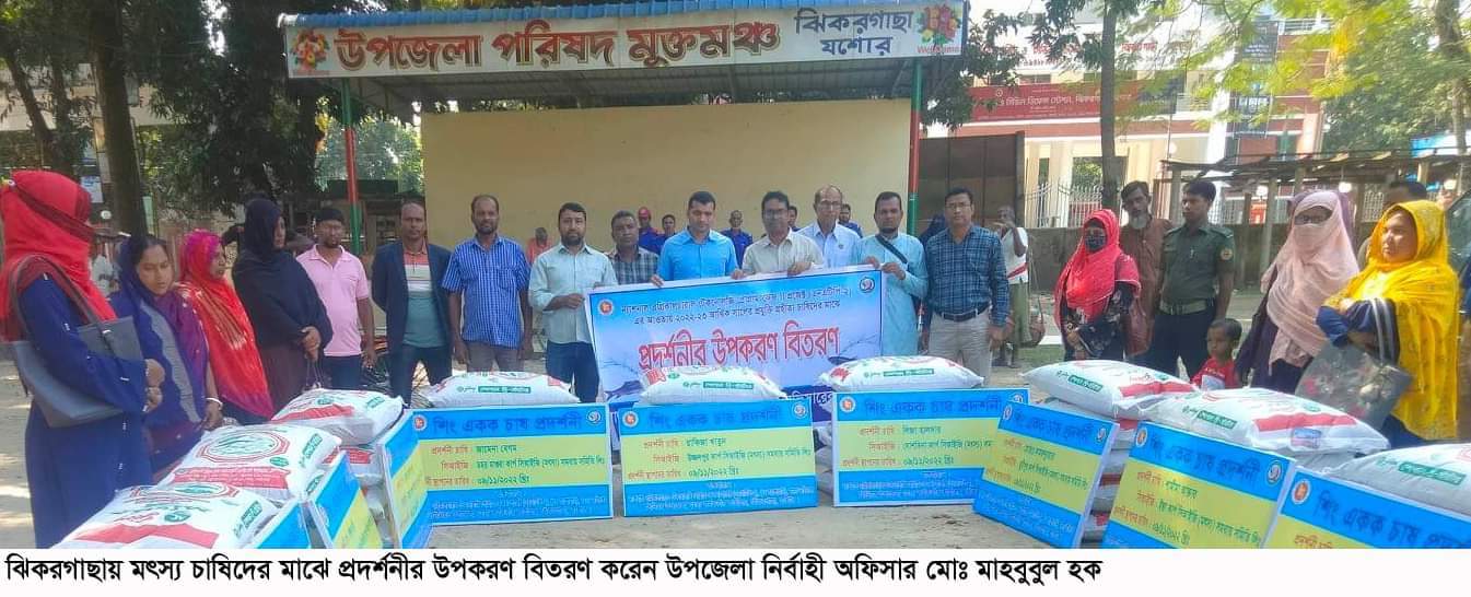 যশোরের ঝিকরগাছায় ন্যাশনাল এগ্রিকালচারাল টেকনোলজি প্রোগ্রাম-ফেজের প্রজেক্ট (এনএটিপি-২) এর আওতায় ২০২২-২৩ আর্থিক সালের প্রযুক্তি গ্রহিতা চাষিদের মাঝে প্রদর্শনীর উপকরণ বিতরণ করা হয়েছে। বৃহস্পতিবার সকাল সাড়ে ১০টায় সময় উপজেলা পরিষদের মুক্তমঞ্চের সামনে সিনিয়র উপজেলা মৎস্য অফিসারের কার্যালয়’র বাস্তবায়নের অনুষ্ঠানে প্রধান অতিথি ছিলেন উপজেলা নির্বাহী অফিসার মোঃ মাহবুবুল হক। সিনিয়র উপজেলা মৎস্য অফিসার এসএম শাহজাহান সিরাজ’র সভাপতিত্বে উপস্থিত ছিলেন, উপজেলা পরিষদের মহিলা ভাইস চেয়ারম্যান লুবনা তাক্ষী, বীর মুক্তিযোদ্ধা লিয়াকত আলী, আওয়ামী মৎস্যজীবী লীগের উপজেলা আহবায়ক কমিটির আহবায়ক রফিকুল ইসলাম, সহকারী মৎস্য অফিসার নান্নু রেজা, মৎস্য সম্প্রসারণ অফিসার সত্যজিৎ সানা, ক্ষেত্র সহকারী রুহুল কুদ্দুস সহ আরো অনেকে।