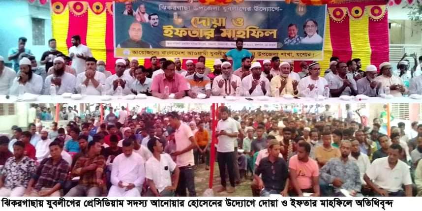 যশোরের ঝিকরগাছায় পবিত্র রমজান উপলক্ষে বাংলাদেশ আওয়ামী যুবলীগের কেন্দ্রীয় কমিটির প্রেসিডিয়াম সদস্য মোঃ আনোয়ার হোসেনের উদ্যোগে ও বাংলাদেশ আওয়ামী যুবলীগের ঝিকরগাছা উপজেলা শাখার আয়োজনে ঝিকরগাছা কৃষ্ণনগরের সম্মিলনী মাধ্যমিক বালিকা বিদ্যালয় প্রাঙ্গনে দোয়া ও ইফতার মাহফিল অনুষ্ঠিত হয়েছে।