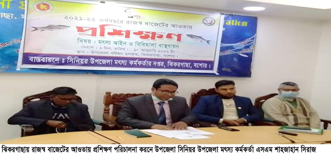 যশোরের ঝিকরগাছায় ২০২১-২২ অর্থবছরের রাজস্ব বাজেটের আওতায় মৎস্য আইন ও বিধিমালা বাস্থবায়নে ২০জন সদস্যদের ( সাংবাদিক, মৎস্য ব্যবসায়ী ও মৎস্য খাদ্য বিক্রেতা) প্রশিক্ষণ অনুষ্ঠিত হয়েছে। মঙ্গলবার সকাল সাড়ে ১১টার সময় উপজেলা পরিষদের ভিডিও কনফারেন্স রুমে উপজেলা সিনিয়র উপজেলা মৎস্য কর্মকর্তার দপ্তরের বাস্তবায়নে উপস্থিত ছিলেন, উপজেলা সিনিয়র উপজেলা মৎস্য কর্মকর্তা এসএম শাহজাহান সিরাজ, উপজেলা মৎস্য সম্প্রসারণ কর্মকর্তা সত্যজিৎ সানা, রাজস্ব ক্ষেত্র সহকারী জাকির হোসেন, ইউনিয়ন প্রকল্পের ক্ষেত্র সহকারী ইস্রাফিল হোসেন, সংবাদকর্মী আতাউর রহমান জসি, তরিকুল ইসলাম, নজরুল ইসলাম বাবুল, এমআর মাসুদ, আবু সাঈদ মিলন, আফজাল হোসেন চাঁদ,শাহাবুদ্দিন মোড়ল, রেজওয়ান বাপ্পী, মিঠুন সরকার, শাহ জামাল শিশির, হান্নান হোসেন, কেএম ইদ্রিস আলীসহ মৎস্য ব্যবসায়ী ও মৎস্য খাদ্য বিক্রেতা উপস্থিত ছিলেন। প্রশিক্ষণ পরিচালনা করনে, উপজেলা সিনিয়র উপজেলা মৎস্য কর্মকর্তা এসএম শাহজাহান সিরাজ।