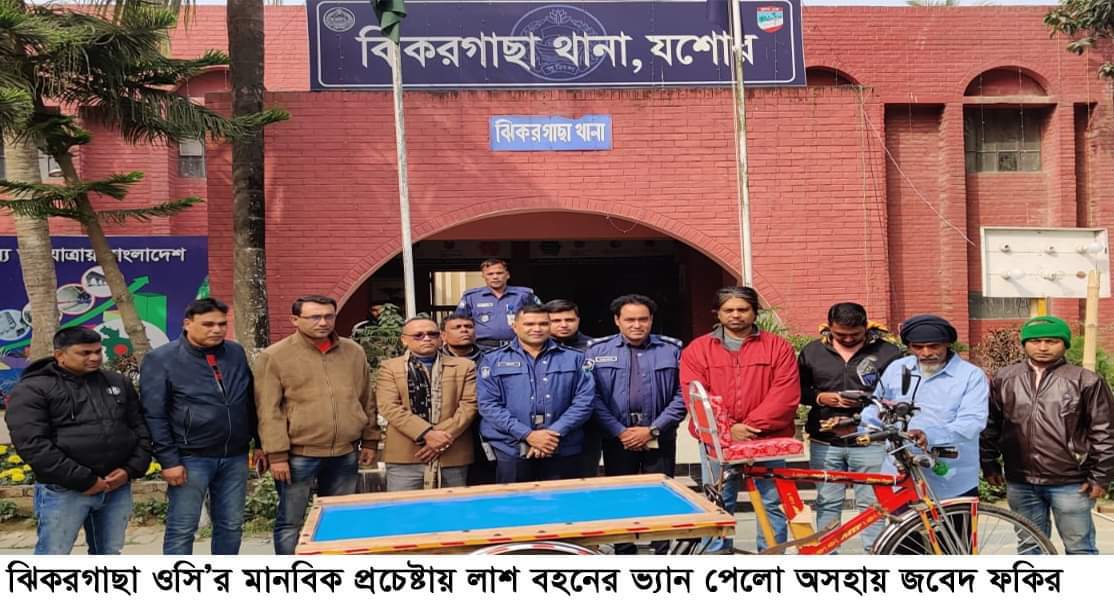 থানা এলাকায় জনসাধারণের লাশ পরিবহনের দীর্ঘদিনের সমস্যাকে সমাধানের হলো যশোরের ঝিকরগাছা থানার মানবিক অফিসার ইনচার্জ (ওসি) সুমন ভক্তের একান্ত প্রচেষ্টায় ও এলাকার ২৬জনের সহযোগিতায় লাশ বহনের ভ্যান গাড়ি পেলো অসহায় জবেদ ফকির। বৃহস্পতিবার (০৫ জানুয়ারী) দুপুর ১২টার সময় থানা প্রাঙ্গণে প্রায় ৬০হাজার টাকা ব্যায় করে জনসাধারণের লাশ পরিবহনের জন্য ডিজিটাল প্রযুক্তির উন্নত মানের ভ্যান গাড়ি ও ড্রেস তৈরী করে পুরন্দরপুর গ্রামের দবির মোড়লের ছেলে জবিদ ফকির’র হতে তুলে দিয়েছেন।