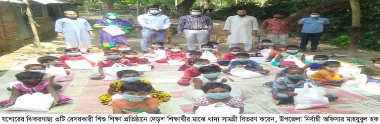 যশোরের ঝিকরগাছা উপজেলা প্রশাসন, দূর্যোগ ও ত্রাণ মন্ত্রনালয়ের উদ্যোগে ৩টি শিশু শিক্ষা প্রতিষ্ঠানের ৪টি ক্যাম্পাসের দেড় শতাধিক শিক্ষার্থীর মাঝে শিশু খাদ্য বিতরণ করা হয়েছে। উপজেলা নির্বাহী অফিসার মোঃ মাহবুবুল হক’র নেতৃত্বে পৌরসদরের ক্রিকেট একাডেমী পরিচালিত আলোকিত নাইট স্কুলের ৫০, পেন ফাউন্ডেশন কর্তৃক পরিচালিত স্বপ্নলোকের পাঠশালার সুবিধা বঞ্চিত শিশু শিক্ষা প্রতিষ্ঠানের ২টি ক্যাম্পাসের ৭০ জন ও সদর ইউনিয়নের মল্লিকপুর গ্রামের বেসরকারী প্রাক-প্রাথমিক বিদ্যালয়ের ৩০ জন দুস্থ শিক্ষার্থীকে দুধ, সুজি, বিস্কুট, সোয়াবিন তেলসহ আরো অনেক প্রকার খাদ্য সামগ্রী প্রদান করা হয়েছে। এসময় উপস্থিত ছিলেন, উপজেলা নির্বাহী অফিসার মোঃ মাহবুবুল হক, উপজেলা প্রকল্প বাস্তবায়ক কর্মকর্তা (পিআইও) শুভাগত বিশ^াস, সাবেক নির্বাচন অফিসার স্বপন কুমার ঘোষ, উপজেলা পরিষদের সিএ ইমদাদুল হক ইমদাদ, হাফেজ মারুফ বিল্লাহ, ক্রিকেট একাডেমীর সাধারণ সম্পাদক শাহারুল আলম হ্যাপি, ক্রিকেটার হাবিবুল বাশার, পেন ফাউন্ডেশন কর্তৃক পরিচালিত স্বপ্নলোকের পাঠশালার প্রতিষ্ঠাতা মেঘনা ইমদাদ, মল্লিকপুর বেসরকারী প্রাক-প্রাথমিক বিদ্যালয়ের শিক্ষক জেসমিন সুলতানা, স্বপ্নলোকের পাঠশালার শিক্ষক শান্তা ইসলাম, বিথি খাতুন প্রমুখ।
