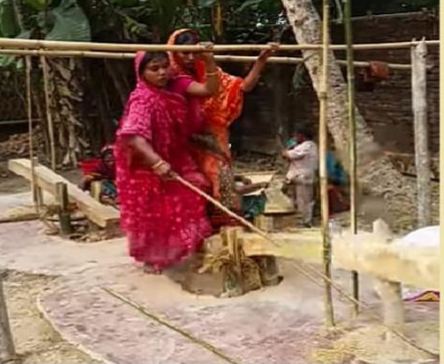 উপজেলার বিভন্ন গ্রামে গিয়ে দেখা যায়, ধাপুর-ধুপুর শব্দে একজন গৃহবধূ রুবিনা খাতুন (৪০) নামের গৃহবধু ঢেঁকির উপরে পা দিয়ে চাল ভাঙ্গে। ঢেঁকিতে চাল থেকে আটা তৈরী করতে গ্রামের অনেকেই তাদের বাড়িতে আসেতো।এখন কম সময়ে মেশিনের মাধ্যমে সহজেই আটা তৈরী করা যায় তবে ঢেঁকি কেন।