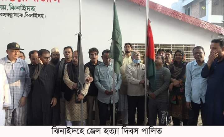 ঝিনাইদহে নানা আয়োজনের মধ্য দিয়ে পালিত হয়েছে জেল হত্যা দিবস। বৃহস্পতিবার সকালে জেলা আওয়ামী লীগের কার্যালয়ে জাতীয় পতাকা ও দলীয় পতাকা অধর্-নমিতকরন এবং কালো পতাকা উত্তোলন করা হয়। সেখানে চার জাতীয় নেতা সৈয়দ নজরুল ইসলাম, তাজউদ্দীন আহমদ, এ এইচ এম কামারুজ্জামান ও ক্যাপ্টেন মনসুর আলীর প্রতিকৃতিতে শ্রদ্ধা জানানো হয়। সেখান থেকে একটি র্যালী বের করা হয়। র্যালীটি শহরের বিভিন্ন সড়ক ঘুরে প্রেরণা একাত্তর চত্বরে গিয়ে শেষ হয়। সেখানে জাতির পিতা বঙ্গবন্ধু শেখ মুজিবুর রহমানের প্রতিকৃতিতে পুষ্পস্তবক অর্পণ করেন।
