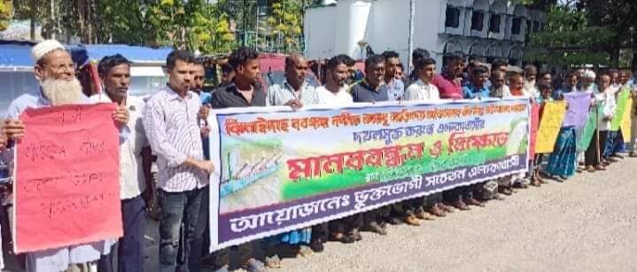 এসময় বক্তারা বলেন, জাড়গ্রামের পাশ দিয়ে বয়ে যাওয়া নবগঙ্গা নদীর ৭ টি স্থানে বাঁধ দিয়ে মাছ চাষ করছে প্রভাবশালীরা। স্থানীয় কৃষকরা নদীতে গেলে তাদের মারধর করা হয়। এমনকি নদীর পানিও ব্যবহার করতে দেওয়া হয় না। তাই দ্রæত বাঁধ অপসারণ করার দাবী তাদের। পরে জেলা প্রশাসকের কাছে তাদের দাবী সম্বলিত একটি স্মারকলিপি পেশ করেন তারা।