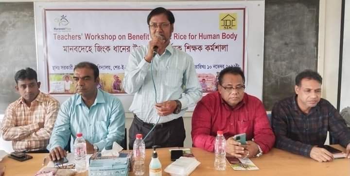 ঝিনাইদহে মানবদহে জিংক চালের উপকারীতা শীর্ষক শিক্ষক কর্মশালা অনুষ্ঠিত হয়েছে। হারভেস্টপ্লাস এর সহযোগিতায় সোসাইটি ডেভেলপমেন্ট কমিটি (এসডিসি) এর আয়োজনে বৃহস্পতিবার দুপুরে ঝিনাইদহ সরকারি উচ্চ বিদ্যালয়ে এ কর্মশালা অনুষ্ঠিত হয়। সরকারি উচ্চ বিদ্যালয়ের প্রধান শিক্ষক মোঃ আব্বাস উদ্দীনের সভাপতিত্বে অনুষ্ঠানে প্রধান অতিথি হিসেবে উপস্থিত ছিলেন জেলা মাধ্যমিক শিক্ষা অফিসার শেখ মনিরুল ইসলাম আলমগীর। বিশেষ অতিথি হিসেবে উপস্থিত ছিলেন জেলা শিক্ষা অফিসের সহকারী পরিদর্শ মোজাফফর হোসেন পলাশ, একেএম ফয়সানুল কবির, উপজেলা মাধ্যমিক শিক্ষা কর্মকর্তা শেখ কামরুজ্জামান, হারভেস্টপ্লাসের বিভাগীয় সমন্বয়কারী কৃষিবিদ জাহিদ হোসাইন, সোসাইটি ডেভেলপমেন্ট কমিটি (এসডিসি) এর ডেপুটি প্রোগাম ম্যানেজার বিপ্লব মহলদার। এসময় জেলার সদর ও কালীগঞ্জ উপজেলার ৩০জন মাধ্যমিক কিদ্যালয়ের শিক্ষক উপস্থিত ছিলেন।