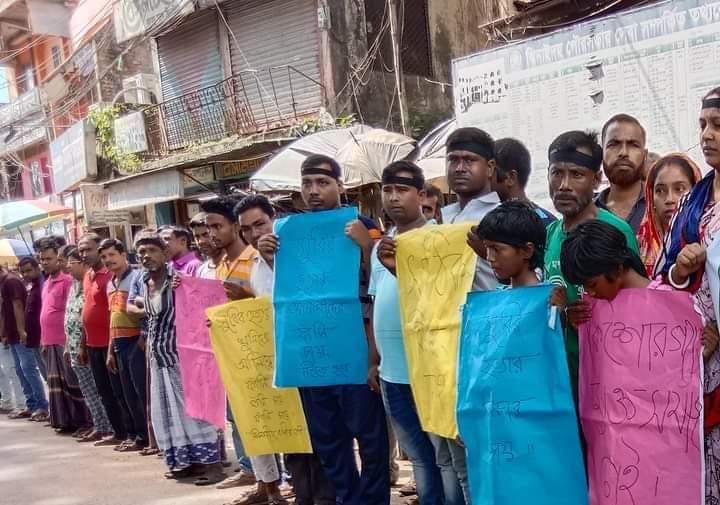ঝিনাইদহ শহরের সেলুন কর্মী সুবির কুমার দাস হত্যার প্রতিবাদ ও খুনদের ফাঁসির দাবীতে চাকলাপাড়া মহল্লাবাসি মানববন্ধন করেছে।শুক্রবার বেলা ১০টার দিকে ঝিনাইদহ শহরের পোস্ট অফিস মোড়ে এই মানববন্ধন কর্মসূচি পালিত হয়।এই কর্মসূচিতে চাকলাপাড়া,মহিষাকুন্ডু ও পুরানো হাটখোলা এলাকার শত শত নারী পুরুষ অংশ গ্রহন করেন।কর্মসুচি শেষে এক প্রতিবাদ সমাবেশে বক্তব্য রাখেন,মুক্ত,রাম সরকার,সাদ্দান হোসেন,শামসুল হক,সুজিত কর্মকার,সুকুমার দাস,নাসের হাসান সোহাগ,সুশান্ত সরকার প্রমুখ।বক্তাগন বলেন চাকলাপাড়া পাড়ায় কিশোর গ্যাং ও মাদক ব্যবসায়ীরা বেপরোয়া হয়ে উঠেছে।প্রশাসনকে মাসোয়ারা দিয়ে এই চক্র মাদক ব্যবসা করে যাচ্ছে।তারাই পারিবারিক বিরোধের জের ধরে সেলুন কর্মী সুবিরকে নির্মম ভাবে হত্যা করেছে বলেছে অভিযোগ করা হয়।উল্লেখ্য গত সোমবার ( ৪ অক্টোবর) মধ্যরাতে চাকলাপাড়ার মির্জা মহলের সামনে সুবীরকে হত্যা করা হয়।হামলায় নিহত’র পিতা সত্যপদ দাস,মা শিখা রানী দাস ও ভাই খোকন দাসও আহত হন।তারা ঢাকা মেডিকেল কলেজ হাসপাতালে চিকৎসাধীন আছেন।এ ঘটনায় র্যাব মামলার আসামী নির্মল দাস ও লিমন জোয়ারদার সহ কয়েকজন কে গ্রেফতার করেছে।