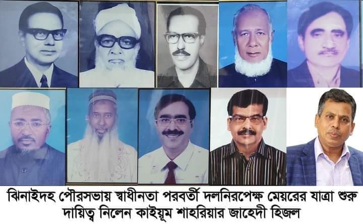 স্বাধীনতা পরবর্তী ঝিনাইদহ পৌরসভায় দলনিরপেক্ষ মেয়রের কার্যকাল শুরু হলো। সোমবার দুপুরে “জনতার মেয়র” খ্যাত কাইয়ূম শাহরিয়ার জাহেদী হিজল দায়িত্বভার গ্রহন করেন। ঝিনাইদহ পৌরসভা মিলনাতায়নে অতিরিক্ত জেলা প্রশাসক ও পৌরসভার প্রশাসক ইয়ারুল ইসলাম নতুন মেয়রকে দায়িত্বভার বুঝে দেন। কাইয়ূম শাহরিয়ার জাহেদী হিজল দায়িত্ব বুঝে নিয়ে কিছু সময় অফিস করেন ও পৌর কর্মকর্তা-কর্মচারিদের সঙ্গে পরিচিত হন। এ সময় নবনির্বাচিত কাউন্সিলরবৃন্দ, পৌরসভার কর্মকর্তা-কর্মচারী, সুশীল সমাজের প্রতিনিধি ও সাংবাদিকবৃন্দ উপস্থিত ছিলেন। দীর্ঘ ১১ বছর পর সীমানা জটিলতা মামলা কাটিয়ে ঝিনাইদহ পৌরসভার নির্বাচন অনুষ্ঠিত হয় গত ১১ সেপ্টেম্বর। নৌকার প্রার্থীকে বিপুল ভোটে হারিয়ে দল নিরপেক্ষ ব্যক্তি হিসেবে কাইয়ূম শাহরিয়ার জাহেদী হিজল মেয়র নির্বাচিত হন। এর আগে ১১ বছরের বেশি সময় ধরে আওয়ামীলীগের সাধারণ সম্পাদক সাইদুল করিম মিন্টু পৌরসভার মেয়র হিসেবে তার কার্যকাল শেষ করেন। তথ্য নিয়ে জানা গেছে ১৯৫৮ সালের ২৪ এপ্রিল স্বাধীনতা উত্তর ঝিনাইদহ টাউন কমিটির চেয়ারম্যান নির্বাচিত হন আওয়ামীলীগ সমর্থিত ডাঃ কে আহম্মেদ। তিনি দুই বছর দায়িত্ব পালন করেন। ১৯৬০ সালের পহেলা জুন মুসলীমলীগ সমর্থিত এস এম মতলুবুর রহমান টাউন কমিটির চেয়ারম্যান হিসেবে দায়িত্ব নেন। ১৯৬৫ সালের ৩ আগষ্ট থেকে ১৯৭১ সালের ২০ ডিসেম্বর পর্যন্ত একই দলের আসাদুজ্জামান খান চেয়ারম্যান হিসেবে দায়িত্ব শেষ করেন। স্বাধীনতা পরবর্তী ১৯৭৪ সালে আওয়ামীলীগের প্রার্থী নুরুন্নবী সিদ্দিকীকে পরাজিত করে পৌরসভার নতুন চেয়ারম্যান নির্বাচিত হন আওয়ামীলীগের বিদ্রোহী প্রার্থী এ্যাডভোকেট আমির হোসেন মালিতা। ১৯৭৭ সালে আইএলডি দলের প্রার্থী নুরুন্নবী ছামদানী পৌরসভার চেয়ারম্যান নির্বাচিত হন। পরবর্তীতে তিনি পৌর চেয়ারম্যানের পাশাপাশি এমপি হিসেবেও দায়িত্ব পালন করেন। ১৯৮৪ সালে জাসদ নেতা হিসেবে পৌর চেয়ারম্যান নির্বাচিত হন মোশাররফ হোসেন মশা। পরে তিনি জাতীয় পার্টিতে যোগদান করেন। একাধারে তিনি ১৯৮৯ থেকে ১৯৯১ ও ১৯৯৯ সাল থেকে ২০০১ সাল পর্যন্ত পৌরসভা শাসন করেন। বিএনপির নেতৃত্বাধীন জোট ক্ষমতায় আসার পর ১৯৯৩ সালে পৌরসভার চেয়ারম্যান নির্বাচিত হন বিএনপির প্রার্থী এস এম আনিছুর রহমান খোকা। ১৯৯৯ সালে আবারো চেয়ারম্যান নির্বাচিত হন জাপা প্রার্থী মোশাররফ হোসেন মশা। তার মৃত্যুজনিত কারণে উপ-নির্বাচনে ২০০২ সালে বিএনপি প্রার্থী আ.ক.ম মশিউর রহমান চেয়ারম্যান নির্বাচিত হন। ২০০৪ সালে বিএনপির প্রার্থী আব্দুল মালেক ২০১১ সাল পর্যন্ত মেয়র হিসেবে দায়িত্ব পালন করেন। ২০১১ সালের ২৮ মার্চ থেকে ২০২১ সালের ২৪ নভেম্বর পর্যন্ত আওয়