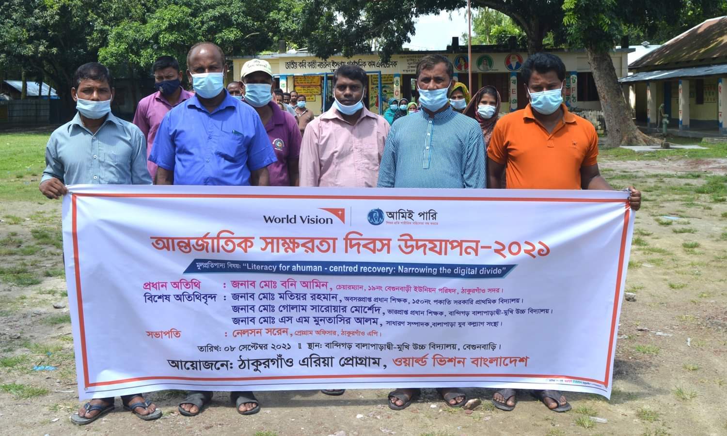 ঠাকুরগাঁওয়ে আন্তর্জাতিক স্বাক্ষরতা দিবস উদযাপন ২০২১। মুলপ্রতিবাদ্য বিষয়ঃ“Literacy for a human-centered recovery: narrowing: the digital divide.” আয়োজনে ঠাকুরগাঁও এরিয়া প্রোগ্রাম, ওয়ার্ল্ড ভিশন বাংলাদেশ। স্থানঃ বান্দিগড় দ্বি-মুখী উচ্চ বিদ্যালয়, বেগুনবাড়ি, ঠাকুরগাঁও।