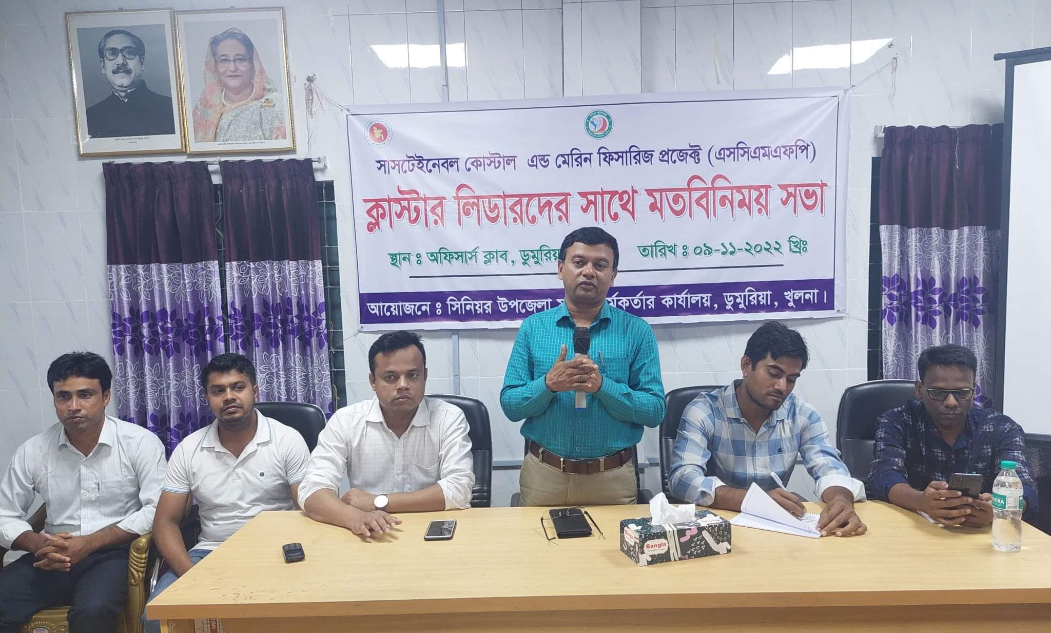 খুলনা ডুমুরিয়ায় সাসটেইনেবল কোস্টাল এন্ড মেরিন ফিসারিজ প্রজেক্ট (এসসিএমএফপি) ক্লাস্টার লিডারদের সাথে মতবিনিময় সভা অনুষ্ঠিত হয়।