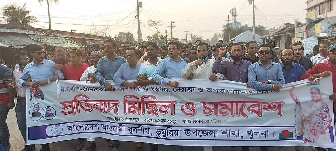 কেন্দ্রীয় কর্মসূচির অংশ হিসেবে ডুমুরিয়া উপজেলা বিএনপির আয়োজনে এক বিক্ষোভ মিছিল ও সমাবেশ অনুষ্ঠিত হয়েছে।