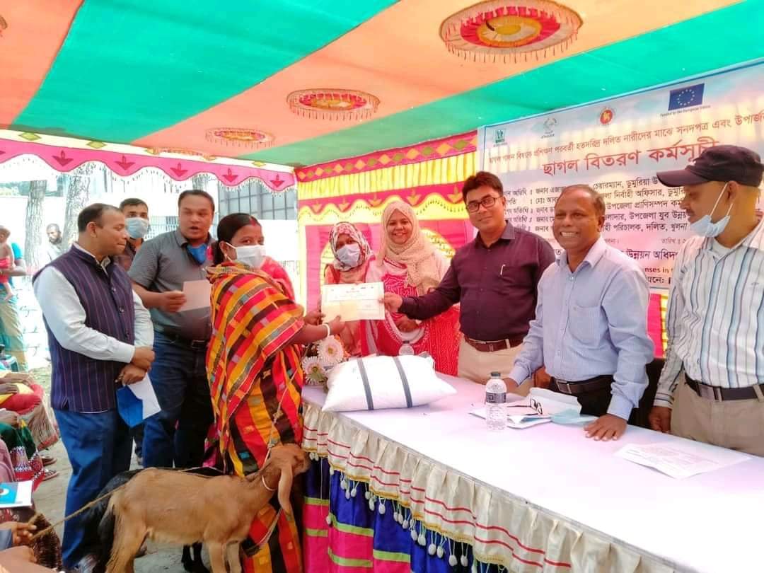 ডুমুরিয়ায় হতদরিদ্র দলিত নারীদের মাঝে ছাগল বিতরণ করা হয়েছে। ছাগল পালন বিষয়ক প্রশিক্ষণ পরবর্তী উপার্জন মূখী উপকরণ হিসাবে ছাগল বিতরণ করা হয়। এ লক্ষ্যে এক আলোচনা সভা অনুষ্ঠিত হয়