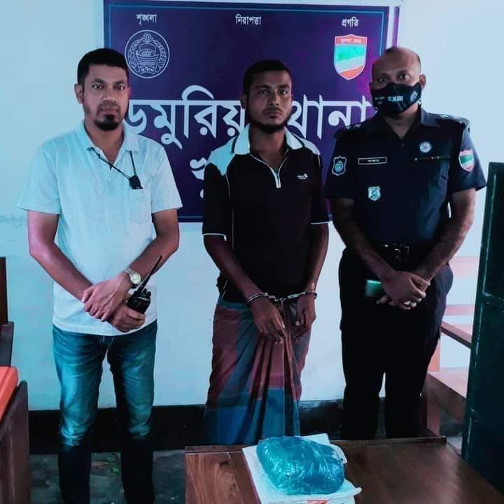 খুলনার ডুমুরিয়া থানা পুলিশের অভিযানে ৪০০ গ্রাম গাঁজাসহ উখড়া গ্রামের মাহাতাব শেখের ছেলে হাফিজুর রহমান(৩১) কে গ্রেপ্তার করে। গতকাল শনিবার এ ঘটনা ঘটে।