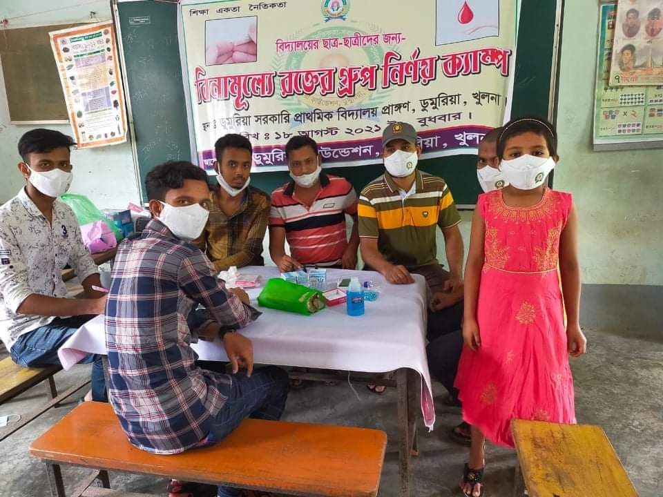 খুলনার ডুমুরিয়ায় পেশাজীবি সামাজিক সংগঠন ডুমুরিয়া ফাউন্ডেশন এর উদ্যোগে দিনব্যাপী ডুমুরিয়া সরকারি প্রাথমিক বিদ্যালয়ের শিক্ষার্থীদের বিনামূল্যে রক্তের গ্রুপ নির্ণয় কর্মসূচি পালন করেছে। উক্ত অনুষ্ঠানের ভার্চুয়ালি উদ্বোধন করেন উক্ত ফাউন্ডেশন এর প্রধান উপদেষ্টা প্রফেসর ডাঃ বিশ্বাস আখতার হোসেন ও সভাপতি অধ্যক্ষ আব্দুর রশীদ মোড়ল। সার্বিক দিক নির্দেশনা দেন ফাউন্ডেশনের সাধারণ সম্পাদক শামীম আহমেদ বাপ্পী, এবং সারাদিন ব্যপি মাঠ পর্যায়ে সার্বিক তত্বাবধানে ছিলেন সংগঠনের সহ-সাংগঠনিক সম্পাদক জাহিদুল ইসলাম লিপু।