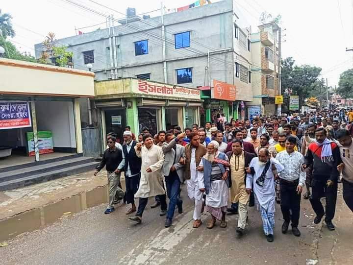 এদিকে একই সময় পৌর আওয়ামী লীগের সহসভাপতি মঞ্জুরুল ইসলাম বিদ্যুতের নেতৃত্বে শিমলা বাজার থেকে আনন্দ মিছিল বের হয়। মিছিলটি বাস টার্মিনাল সড়ক প্রদক্ষিণ শেষে বঙ্গবন্ধু চত্বরে সংক্ষিপ্ত আলোচনা সভা করা হয়। পরে খুশিতে মিষ্টি বিতরন করে আনন্দ মুখর পরিবেশে জয় বাংলা স্লোগান ধরেন।