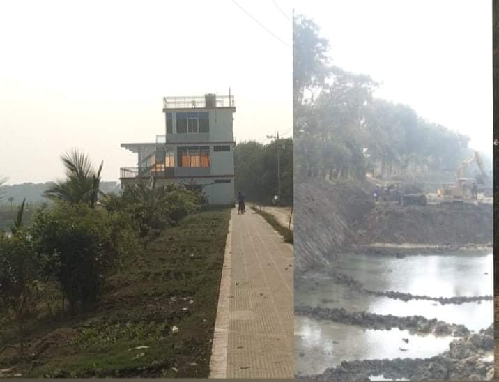 জানা গেছে, তানোর সীমানা বেয়ে বয়ে চলা বিল কুমারী বিল এবং মোহনপুর সীমানায় শ্যানার ও মাইলার বিলের মাঝে দিয়ে আশির দশকের দিকে কৃষকের ফসল রক্ষার জন্য বন্যা নিয়ন্ত্রণ বাধ নির্মাণ করা হয়।সুফল ভোগ করে দুই উপজেলার হাজার হাজার কৃষক এবং রক্ষা পায় অনেক গ্রাম । কিন্তু গতবার মোহনপুর পবা আসনের এমপি আয়েন উদ্দিন বিলের জমিতে পুকুর করেন।তিনি পুকুর পাড়ে বা বাঁধ সংলগ্ন জায়গায় গড়ে তুলেছেন আলিশান ভবন।সেই ভবনে প্রায় দিন বাঁধ কেলে রান্নাবাড়া চলে।এভবন থেকে দক্ষিনে প্রায় দেড় কিলোমিটার রাস্তা নির্মাণ করছেন পানি উন্নয়ন বোর্ড। বাধের নিচ থেকেই ভেকু মেশিন দিয়ে কেটে বাঁধের উপর দেওয়া হচ্ছে মাটি। যার কারনে চরম হুমকির মধ্যে পড়েছে বাঁধ। এই বিশাল প্রকল্পে জনগনের খুব একটা লাভ না হলেও এমপি আয়েন উদ্দিনের ভালোই হবে বলে মনে করা করছেন অনেকেই।