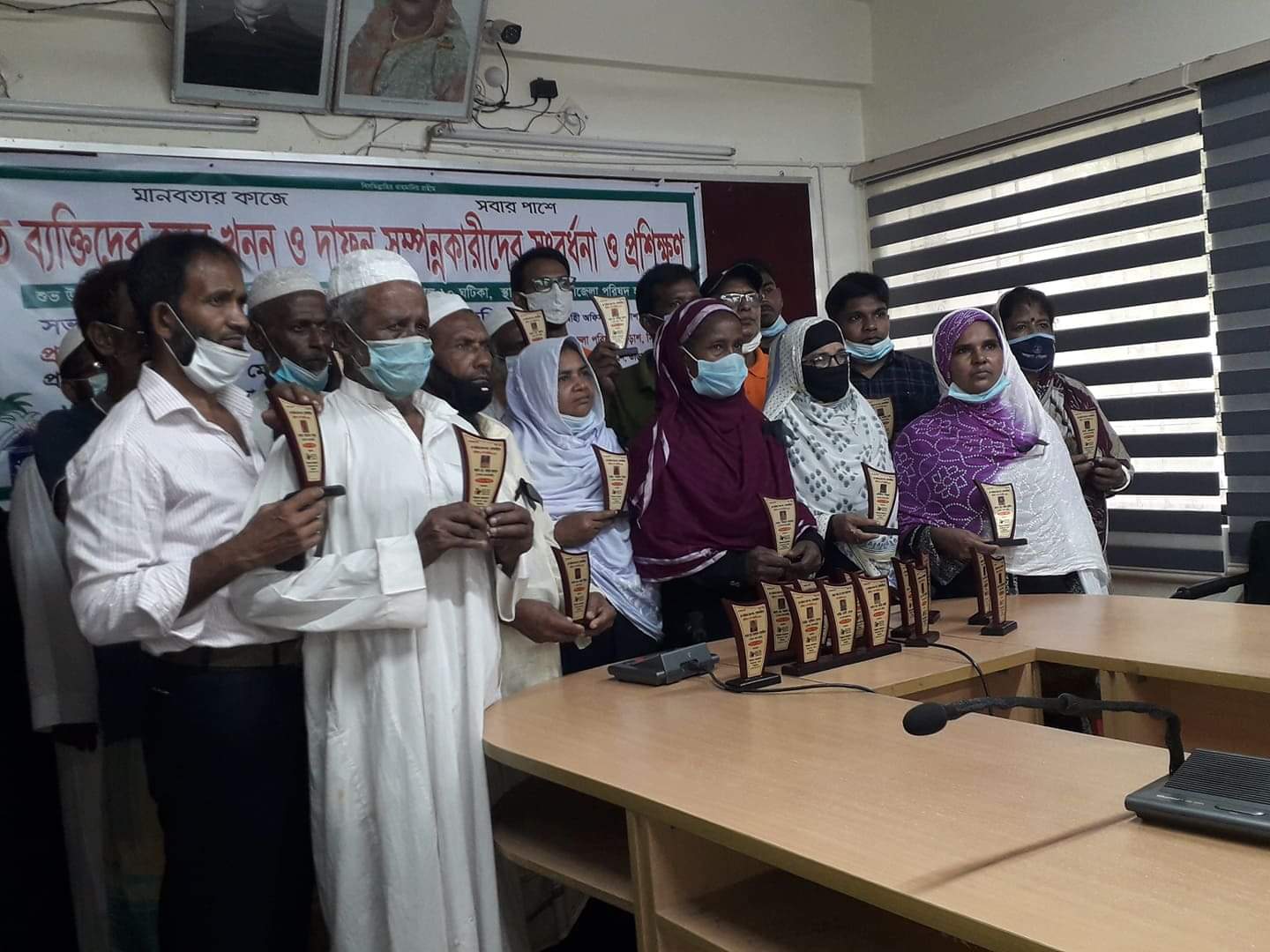 সিরাজগঞ্জের তাড়াশে মৃতব্যাক্তিদের কবর খনন ও দাফন-কাফন সম্পূর্ণকারীদের প্রশিক্ষণ ও সম্মাননা স্বারক প্রদান অনুষ্ঠিত হয়েছে। মঙ্গলবার (১৭আগস্ট) সকাল ১০ টায় তাড়াশ উপজেলা পরিষদ হলরুমে ত্রিশ জন কবর খনন ও দাফন-কাফন সম্পূর্ণকারীদের এ সম্মাননা দেওয়া হয়।