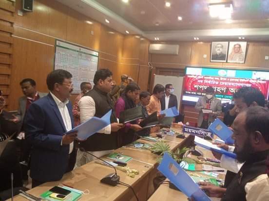 এর আগে ময়মনসিংহে জেলা প্রশাসকের হলরুমে সকাল সাড়ে ১০ টায় নির্বাচিত চেয়ারম্যানদের শপথ অনুষ্ঠিত হয়।