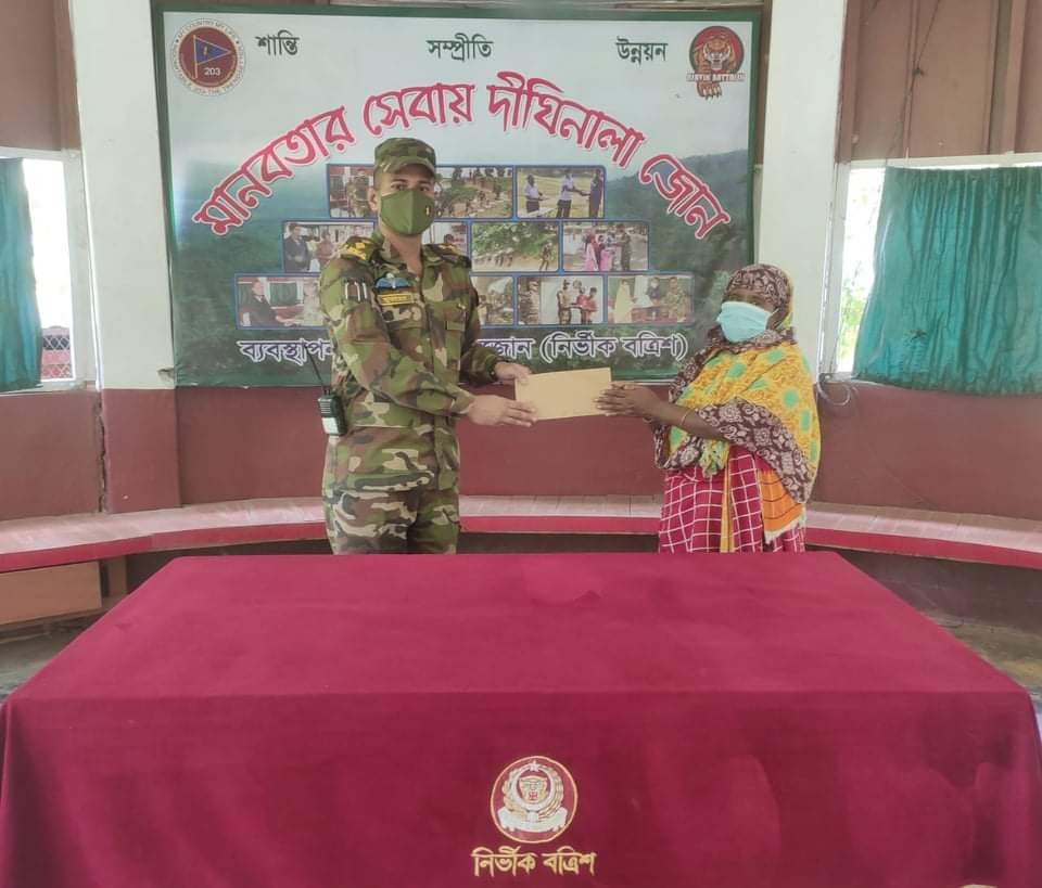 খাগড়াছড়ির দীঘিনালা সেনা জোনের উদ্যোগে অসহায় ও হতদরিদ্র এক মহিলাকে আর্থিক সহায়তা প্রদান করা হয়েছে।