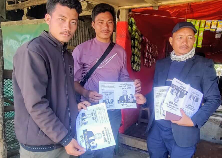 দুর্গম ফারুয়াতে প্রচারণায় ব্যস্ত পহেল চাকমা।