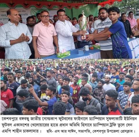 যশোর-৬ কেশবপুর সংসদীয় আসনের এমপি ও যশোর জেলা আওয়ামী লীগের সাধারণ সম্পাদক শাহীন চাকলাদার বলেছেন, আওয়ামী লীগ সরকার ক্রীড়া বান্ধব সরকার। জননেত্রী শেখ হাসিনার নেতৃত্বে আজ ক্রীড়াঙ্গণ বিশ্বের দরবারে সাফল্যে অর্জন করতে সক্ষম হয়েছে। দেশের চলমান উন্নয়নের পাশাপাশি খেলাধুলাকে বাচিয়ে রাখতে হবে।