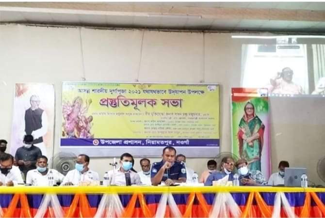 সভায় উপজেলা নির্বাহী অফিসার আব্দুল্লাহ আল মামুনের সভাপতিত্বে বিশেষ অতিথির বক্তব্য দেন, উপজেলা আওয়ামী লীগের সহসভাপতি ও উপজেলা চেয়ারম্যান ফরিদ আহমেদ, উপজেলা ভাইস চেয়ারম্যান আইয়ুব হোসাইন, উপজেলা মহিলা ভাইস চেয়ারম্যান ও মহিলা আওয়ামী লীগের সভাপতি নাদিরা বেগম, উপজেলা আওয়ামী লীগের সভাপতি ও বাহাদুর ইউনিয়নের চেয়ারম্যান আবুল কালাম আজাদ , নিয়ামতপুর থানা অফিসার ইনচার্জ হুমায়ুন কবির, উপজেলা আওয়ামী লীগের সহসভাপতি ও উপজেলা পূজা উদযাপন কমিটির সভাপতি ঈশ্বর চন্দ্র বর্মন, উপজেলা আওয়ামী লীগের সাধারণ সম্পাদক জাহিদ হাসান বিপ্লব, হাজীনগর ইউনিয়নের আওয়ামী লীগের সাধারণ সম্পাদক ও উপজেলা পূজা উদযাপন কমিটির সাধারণ সম্পাদক সুরঞ্জন বিজয়পুরী, ভাবিচা ইউনিয়নের আওয়ামী লীগের সভাপতি ও চেয়ারম্যান ওবাইদুল হক, ভাবিচা ইউনিয়নের আওয়ামী লীগের সাধারণ সম্পাদক উৎপল সরকার পিন্টু,পাড়ইল ইউনিয়নের আওয়ামী লীগের সভাপতি ও চেয়ারম্যান সৈয়দ মজিব গেন্ধা, শ্রীমন্তপুর ইউনিয়নের আওয়ামী লীগের সভাপতি ও চেয়ারম্যান আজহারুল ইসলাম বুলু প্রমুখ।
