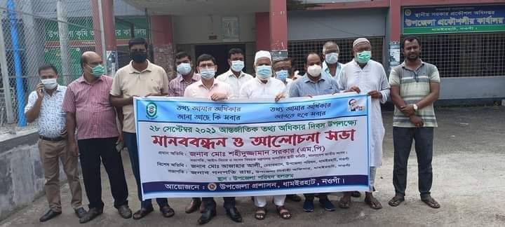 নওগাঁর ধামইরহাটে উপজেলা প্রশাসনের আয়োজনে আন্তর্জাতিক তথ্য অধিকার দিবস উপলক্ষে মানববন্ধন ও আলোচনা সভা অনুষ্ঠিত হয়েছে।