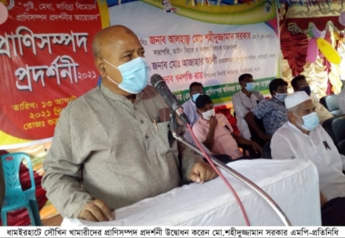 -নওগাঁর ধামইরহাটে উপজেলা প্রাণি সম্পদ দপ্তরের আয়োজনে প্রাণি সম্পদ প্রদর্শনী মেলার আয়োজন করা হয়। এ মেলায় দেশী-বিদেশী বিভিন্ন জাতের গরু, ছাগল, কবুতর সহ বিভিন্ন প্রাণির সমারোহ ঘটে। প্রাণী সম্পদ প্রদর্শনী মেলা ১৩ আগস্ট বেলা ১১ টায় চকময়রাম সরকারী মডেল উচ্চ বিদ্যালয় মাঠে উপজেলা নির্বাহী অফিসার গনপতি রায়ের সভাপতিত্বে মেলায় প্রধান অতিথি হিসেবে উপস্থিত থেকে মেলা প্রদর্শণ শেষে আলোচনা সভায় বক্তব্য রাখেন আইন বিচার ও সংসদ বিষয়ক মন্ত্রনালয়ের সভাপতি মো. শজীদুজ্জামান সরকার এম.পি। অনুষ্ঠানে উপজেলা চেয়ারম্যান মো. আজাহার আলী মন্ডল, ধামইরহাট পৌর মেয়র আমিনুর রহমান, উপজেলা পরিষদের ভাইস চেয়ারম্যান সোহেল রানা, প্রাণি সম্পদ উপজেলা কর্মকর্তা ডা. এমরান আলী, ভেটেরিনারী সার্জন ডা. রিপা রানী, ধামইরহাট ইউনিয়ন পরিষদের চেয়ারম্যান কামরুজ্জামান, আড়ানগর ইউনিয়নের চেয়ারম্যান শাহজাহান আলী কমল, ইসবপুর ইউনিয়নের চেয়ারম্যান ইমরুল কায়েস বাদল, প্যানেল মেয়র মেহেদী হাসান, খামারি এসোসিয়েশনের সম্পাদক প্রভাষক মিনহাজুল হক সরকার শিবলি প্রমুখ। পরে খামারিদের ক্যাটাগরি ভিত্তিতে সনদপত্র প্রদান করা হয়েছে।