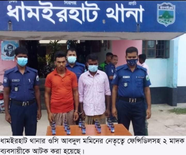 থানা পুলিশ সূত্রে জানা গেছে, ধামইরহাট থানার অফিসার ইনচার্জ আবদুল মমিনের নেতৃত্বে সাব-ইন্সপেক্টর মোঃ হারুন অর রশীদসহ সঙ্গীয় ফোর্স নিয়ে ২৭ জুলাই রাতে ধামইরহাট উপজেলার রামরামপুর গ্রামে অভিযান চালিয়। তাদের কাছ থেকে ১৫ বোতল ভারতীয় ফেন্সিডিল উদ্ধারসহ দুজনকে আটক করে। ধামইরহাট থানায় তাদের বিরুদ্ধে মাদক দ্রব্য নিয়ন্ত্রণ আইনে মামলা দায়ের করা হয়। মামলা নাম্বার ৩৩, তারিখ ২৭-০৭-২১ ইং।