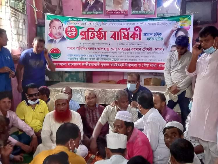 নওগাঁর ধামইরহাটে বাংলাদেশ জাতীয়তাবাদী যুবদল উপজেলা ও পৌর শাখার উদ্যোগে ৪৩ তম যুবদলের প্রতিষ্ঠা বার্ষিকী পালিত হয়েছে।