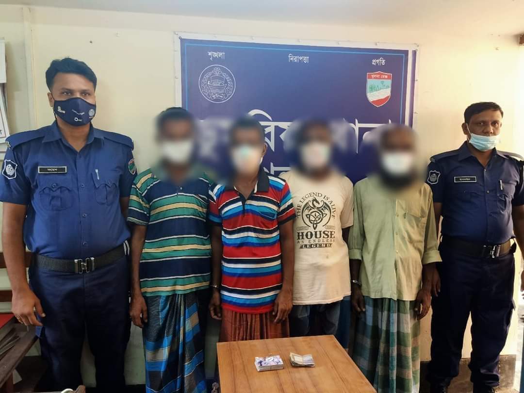 খুলনা ডুমুরিয়া উপজেলার ১নং ধামালিয়া ইউনিয়নের ৭নংওয়ার্ডের টোলনা গ্রামে পুলিশের অভিযানে আজ বৃহস্পতিবার নগত ৫,৫০০ টাকা, জুয়া খেলার সরঞ্জামাদিসহ ৪ জন জুয়াড়িকে গ্রেফতার করেছে পুলিশ।
